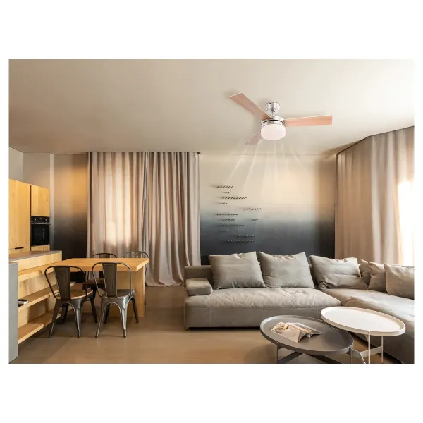 Fan metal nickel matt, glass opal, MDF beech, MDF silver metallic, Remote Control, Battery included 2x AAA, Maximum Motor Power 50W, optimal use of space 15m², Abkühlung, Aufheizen, Speed levels 85/145/200 RPM, ø: 1050mm, H: 305mm, excl. 2x E14 40W 230V