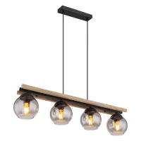 ceiling light metal black matt, wood dark brown, glass smoke colored, LxWxH: 600x150x205mm, excl. 3x E27 25W 230V