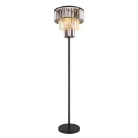 Floor lamp metal black matt, metal brass matt, glass smoke colored, cable PVC black, Foot pedal in cable, LxWxH: 340x250x1600mm, Cable Length 1800mm, excl. 2x E27 40W 230V